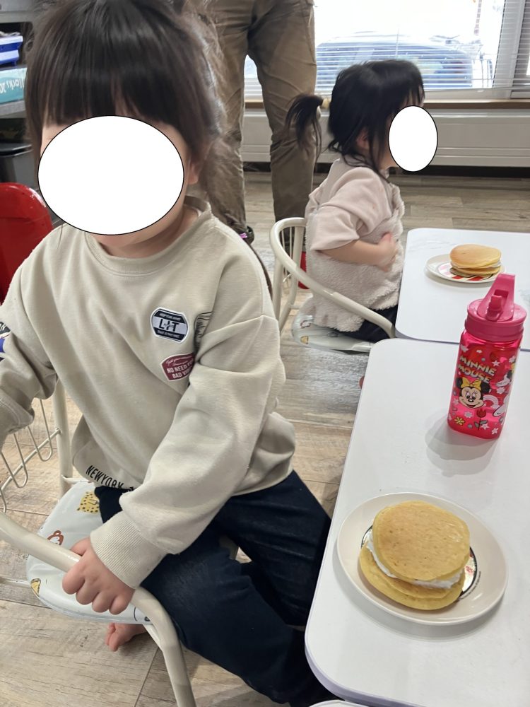 こどもたちはホットケーキミックスを混ぜたり、生クリームをしぼったりと